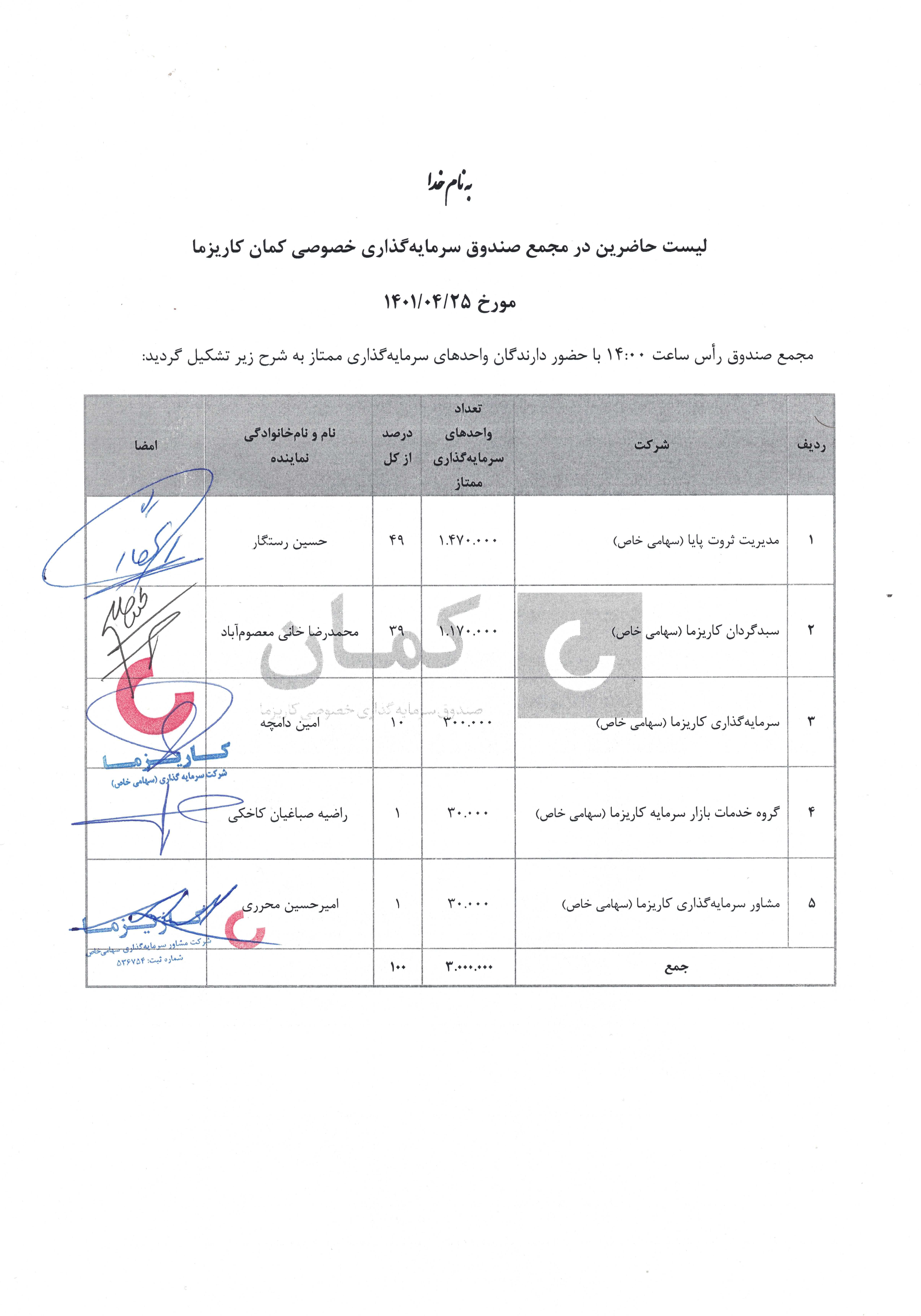 اسامی حاضرین در مجمع ساعت 10:00 مورخ 1402/03/20